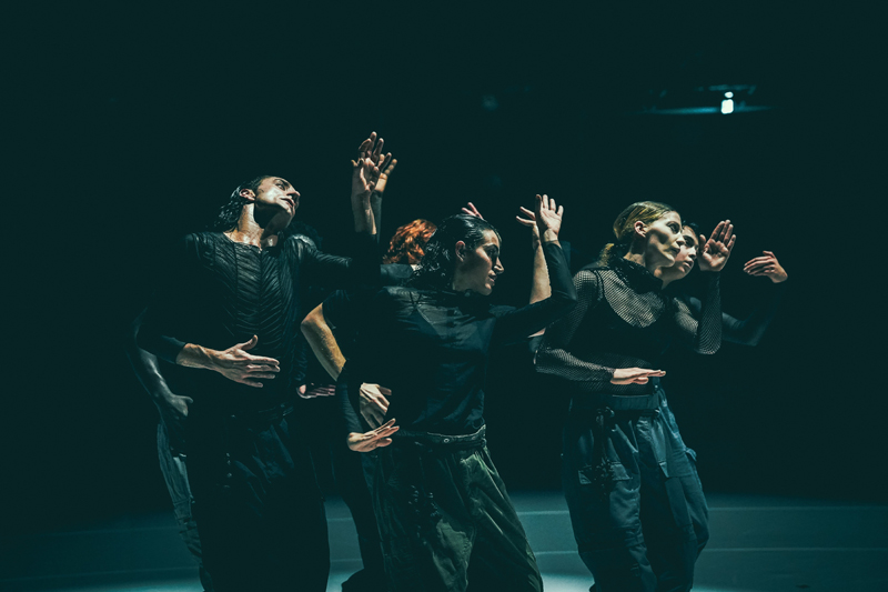 Im letzten Drittel des Stücks mischen sich zunehmend verfremdete beduinische Klänge sowie mitreißende perkussive Rhythmen in die anfangs flirrende Soundcollage (Sounddesign: Gil Nemet). Damit verändert sich gleichsam der bis dahin suchende Ausdruck der TänzerInnen, die nun befreit wirken. Die anfängliche Zerrissenheit scheint gewichen.